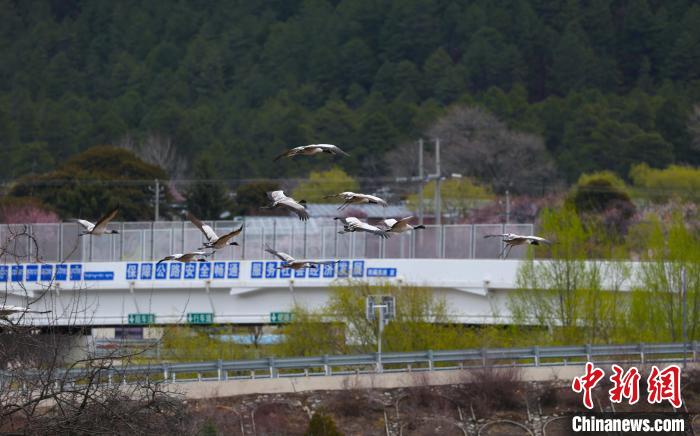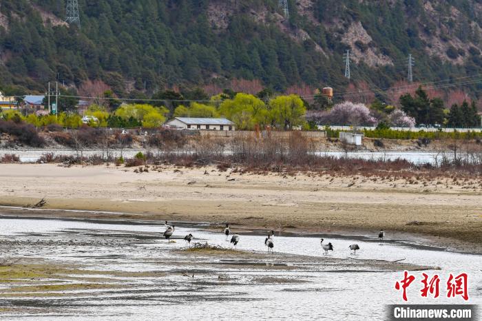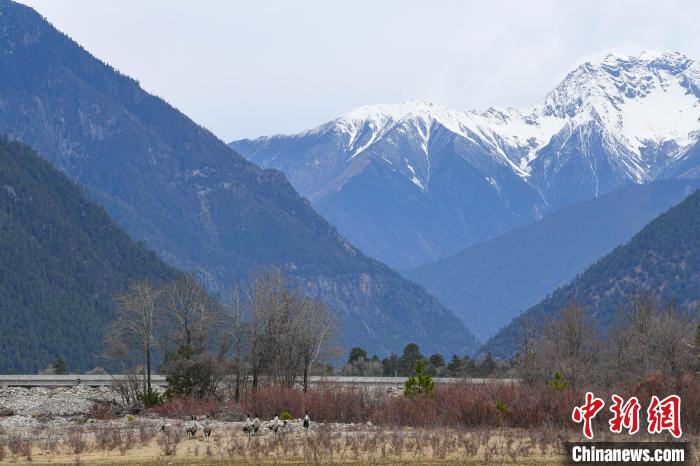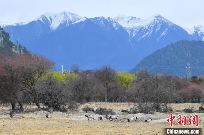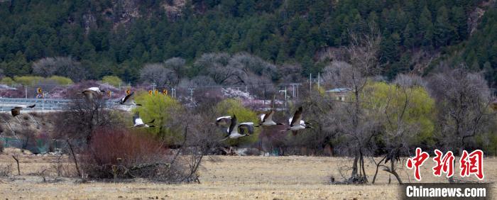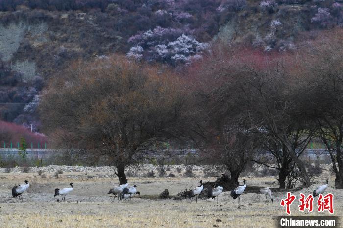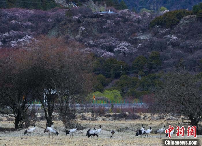 西藏林芝:黑頸鶴與雪山桃花共繪生態(tài)畫(huà)卷