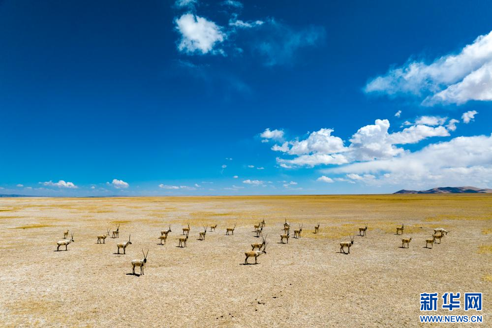 4月14日,在色林錯(cuò)國(guó)家級(jí)自然保護(hù)區(qū)拍攝的藏羚羊。新華網(wǎng) 旦增努布 攝