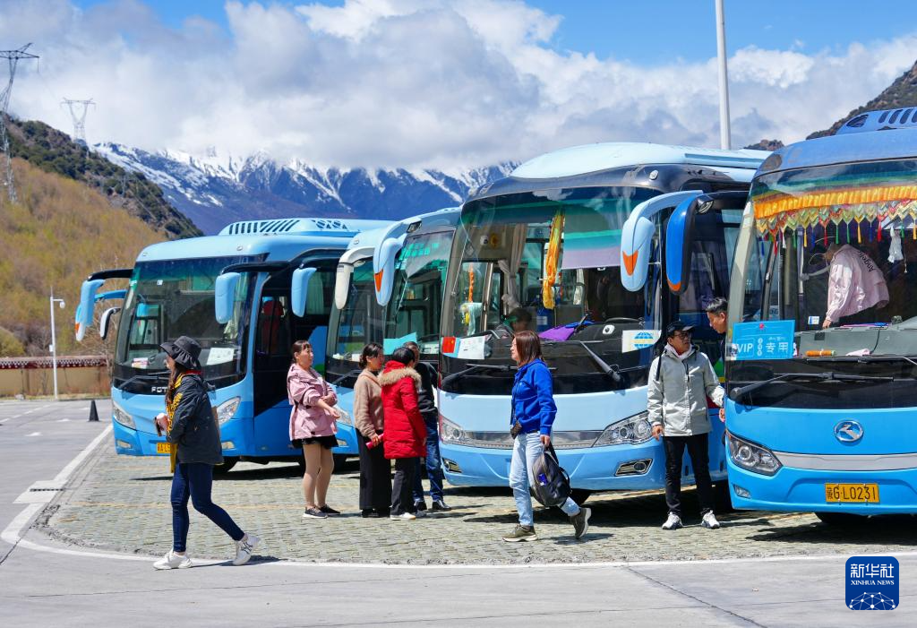 游客在拉(薩)林(芝)高等級公路工布江達縣服務區(qū)下車小憩(4月19日攝)。新華社記者 張汝鋒 攝