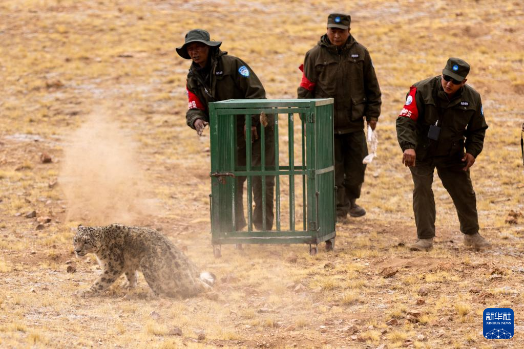 ??5月7日,一只雪豹在西藏自治區(qū)那曲市尼瑪縣被野生動(dòng)物管護(hù)隊(duì)員放歸自然。
