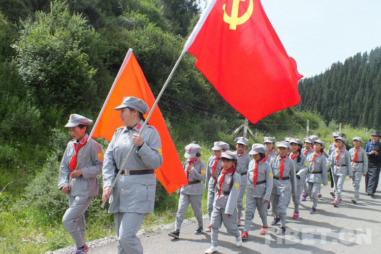 圖為班瑪紅軍小學(xué)學(xué)生在參加學(xué)校舉辦的紅色活動(dòng)