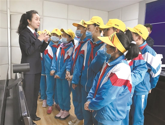 圖為工作人員帶領小學生代表參觀城關區(qū)人民檢察院,并介紹檢察院工作。記者 凃瓊攝