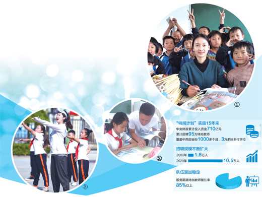 農(nóng)村義務(wù)教育階段學(xué)校教師特設(shè)崗位計(jì)劃(簡(jiǎn)稱“特崗計(jì)劃”)始于2006年,每年公開招考選聘數(shù)萬名高校畢業(yè)生到中西部貧困縣農(nóng)村學(xué)校任教。