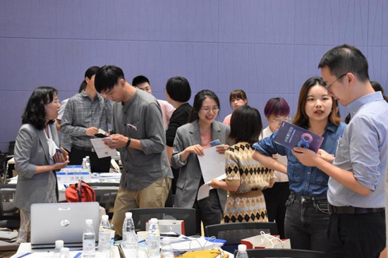 上海外國(guó)語大學(xué)各學(xué)院老師利用雙選會(huì)與企業(yè)HR對(duì)接用人需求。上海外國(guó)語大學(xué)供圖