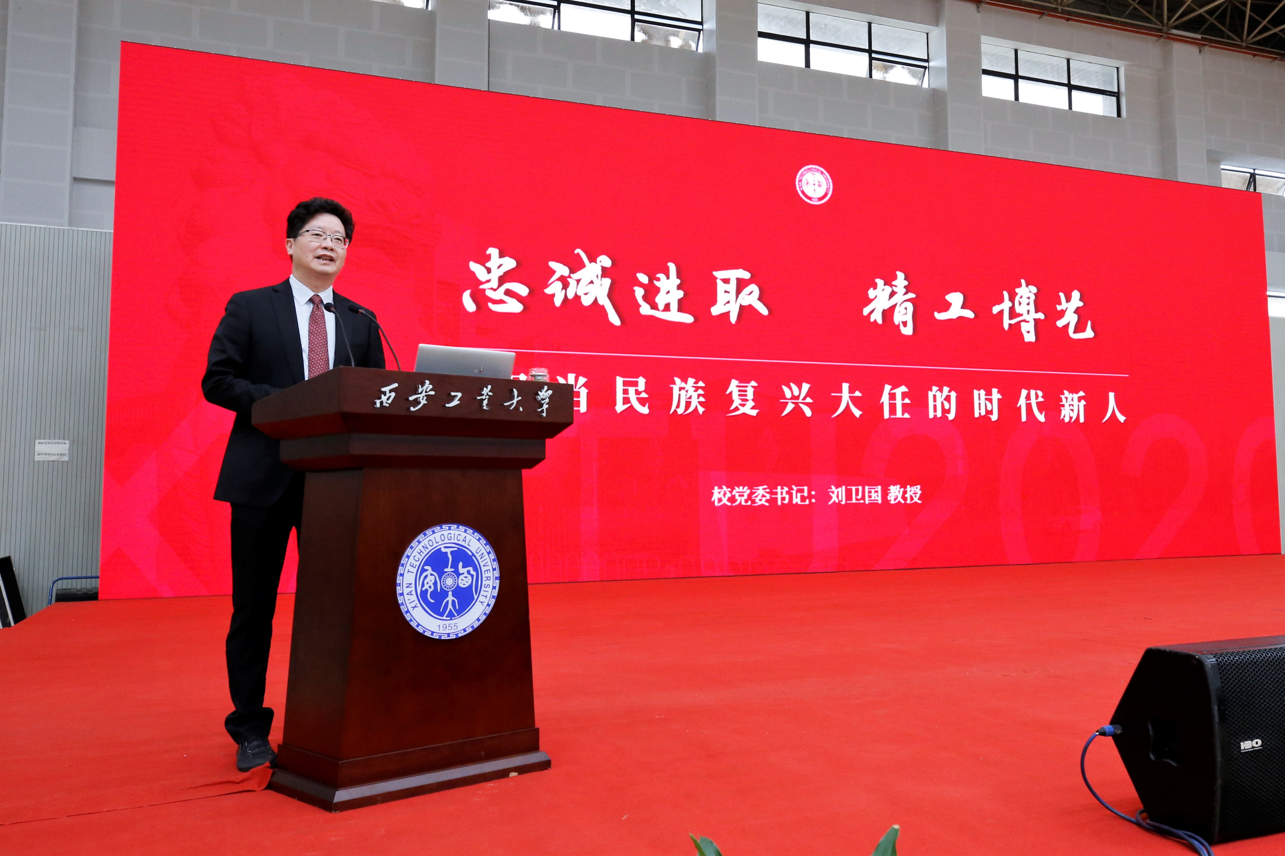 西安工業(yè)大學(xué)校黨委書記劉衛(wèi)國在2020級新生開學(xué)典禮上發(fā)表講話(學(xué)校供圖)