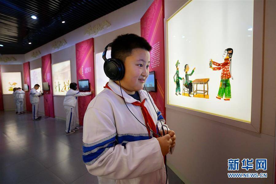 10月19日,小學(xué)生們在中國灤州皮影博物館內(nèi)參觀一幅皮影長卷。 今年以來,河北省灤州市橫渠實驗小學(xué)成立皮影興趣社團,在當?shù)氐闹袊鵀粗萜び安┪镳^開設(shè)校外課堂,組織學(xué)生定期參觀、學(xué)習(xí),增強學(xué)生對傳統(tǒng)文化的了解。