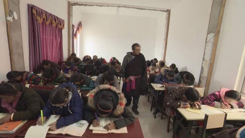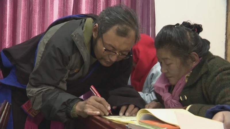 年末的安多早已步入寒冬,忙碌的時節(jié)已接近尾聲。隨著牧閑時節(jié)的到來,帕那鎮(zhèn)一村的“夜?!睙狒[非凡,不時傳來一陣陣讀書聲。每年這個時候,帕那鎮(zhèn)一村宣傳委員嘎達會按時組織牧民們一起補習他們曾經(jīng)落下的藏文、語文、數(shù)學基礎(chǔ)和政策知識、科學文化、法律法規(guī)等知識內(nèi)容。
