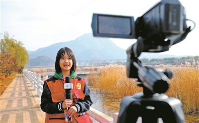 “金秋時(shí)節(jié),聽(tīng)說(shuō)清水河又飛來(lái)了白天鵝,我們特意來(lái)到河邊探訪一下……”太師屯鎮(zhèn)中心小學(xué)校園電視臺(tái)小記者實(shí)地采訪、精心錄制,專(zhuān)題節(jié)目《守護(hù)天鵝》通過(guò)校園電視臺(tái)向師生及家長(zhǎng)播出。樊世剛 攝