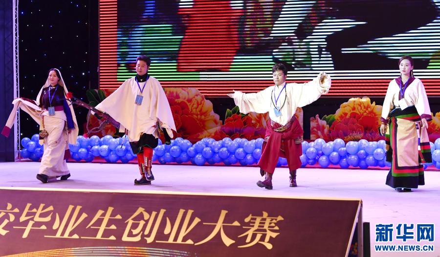 演員在西藏那曲第二屆高校畢業(yè)生創(chuàng)業(yè)大賽決賽現(xiàn)場(chǎng)表演(11月30日攝)。新華社記者 張汝鋒 攝