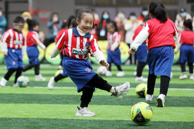 12月7日,淮北市第二實(shí)驗(yàn)幼兒園的小朋友在足球課上學(xué)習(xí)踢足球。安徽省淮北市第二實(shí)驗(yàn)幼兒園是一所“全國(guó)足球特色幼兒園”。該園把足球列入幼兒園體育課教學(xué)內(nèi)容,通過(guò)開(kāi)設(shè)幼兒足球趣味練習(xí)、足球游戲等特色課程,向孩子們傳授足球基本知識(shí)和技巧,從小培養(yǎng)孩子們對(duì)足球的興趣,讓他們感受足球運(yùn)動(dòng)的魅力,健康快樂(lè)成長(zhǎng)。新華社發(fā)(萬(wàn)善朝 攝)