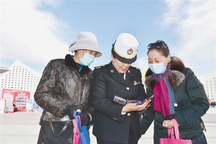 拉薩海關工作人員為過往群眾講解相關法律知識。王杰學 王雪 攝