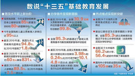 基礎教育涉及千家萬戶,社會關注度高,“十三五”以來,圍繞基礎教育的熱點難點問題實現(xiàn)了新突破。