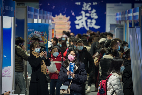 12月2日,2021屆全國普通高校畢業(yè)生就業(yè)創(chuàng)業(yè)促進(jìn)行動(dòng)(湖北·武漢)對(duì)接大會(huì)在洪山體育館正式啟動(dòng)。人民視覺供圖