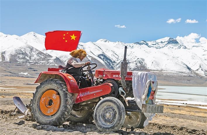 4月30日,拖拉機(jī)在西藏那曲市尼瑪縣當(dāng)穹錯(cuò)旁舉行的春耕典禮上行進(jìn)。新華社記者 侯捷 攝