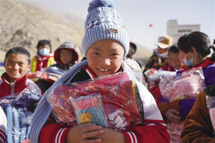 2020年12月31日,阿里巴巴天天正能量聯(lián)合西藏商報(bào)開(kāi)展的2020“針心針意”大型暖冬公益行動(dòng),在愛(ài)心人士們的大力支持下,圓滿(mǎn)畫(huà)上了句號(hào)。工作人員趕在新年前,將愛(ài)心物資分別送往山南市浪卡子縣倫布雪鄉(xiāng)蘇格村蘇格小學(xué)、山南市貢嘎縣森布日搬遷地、拉薩市當(dāng)雄縣5個(gè)村幼兒園,為孩子們送上愛(ài)心物資。孩子們戴上愛(ài)心人士們親手編織的圍巾、帽子和手套,綻放出燦爛的笑容,溫暖了這個(gè)冬天。