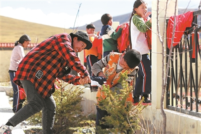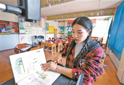 “林瑤可是我們學校的寶貝,既是開心果,又是救火隊員。開學時,六年級缺數(shù)學教師,我就讓她頂上去了。現(xiàn)在,除藏語文外,林瑤什么課都教過,每周要上近30節(jié)課。我們這里海拔4300米,高寒缺氧,但她不缺精神!”說起林瑤,吉尼賽第二寄宿學校校長索南鬧吾不由得豎起了大拇指。