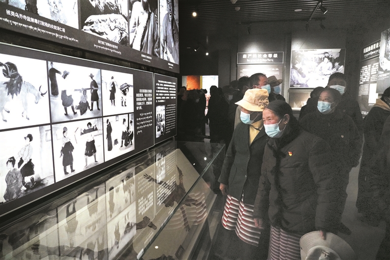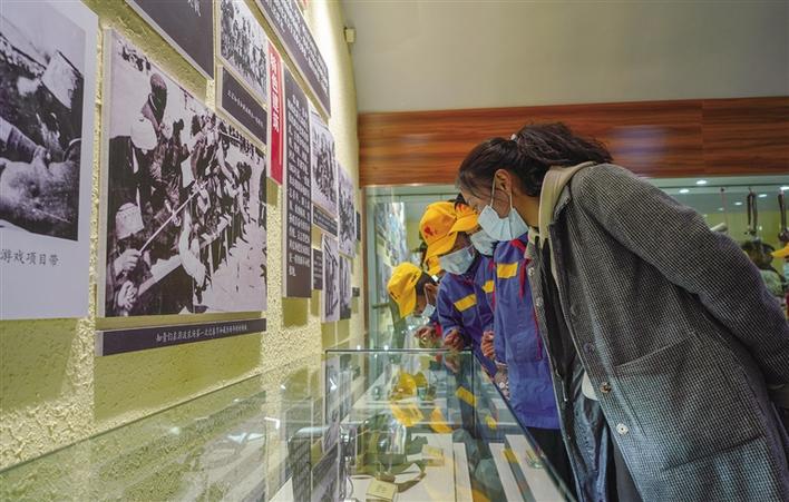 揭牌儀式結束后,現(xiàn)場人員有序參觀林周縣黨員黨性愛國主義教育基地《青春如火 高原如歌》大型展覽。