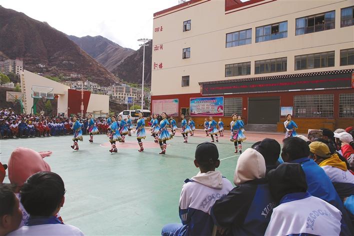 圖為昌都市初級中學(xué)師生在觀看文藝演出。萬慧 攝