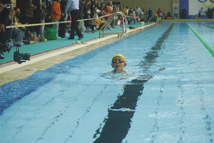 比賽現(xiàn)場,泳池邊一派熱鬧景象,小朋友們摩拳擦掌,舒展筋骨,認真做著熱身運動?!班?!”槍聲響起的那一刻,選手們一個個猶如離弦之箭在50米的賽道上沖刺,朝著對岸終點勇往直前。選手們?nèi)σ愿?,爭分奪秒,碧水中揚起層層水花,完美展現(xiàn)了參賽選手的風采和游泳運動的魅力。家長們在一旁打氣助威,拍視頻記錄著這一刻,選手奮力朝著對岸游動,永不放棄的精神,感動著觀看比賽的每一個人,賽場頓時暖了起來。