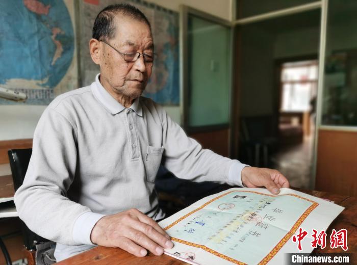 圖為朱汝完整理個人在浙江省永康中學(xué)初中部的畢業(yè)證書。 張?zhí)砀?攝