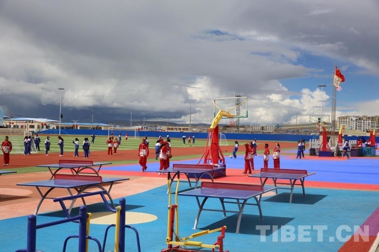 圖為西藏自治區(qū)那曲市色尼區(qū)杭嘉中學(xué)的學(xué)生們正在操場(chǎng)上進(jìn)行各種體育活動(dòng) 攝影:吳建穎