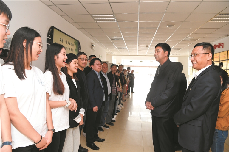 “你們辛苦了!祝大家節(jié)日快樂,身體健康,扎西德勒!”嚴金海先后來到拉薩北京高中、拉薩江蘇實驗中學,看望慰問一線教師,與他們親切交談,向全市廣大教師和教育工作者致以崇高敬意,感謝他們?yōu)槲沂薪逃聵I(yè)作出的貢獻。并實地調(diào)研了解學校硬件設(shè)施、招生教學、國家統(tǒng)編三科教材使用等情況。嚴金海指出,無論是昨天、今天還是明天,西藏的發(fā)展都離不開一代又一代用知識武裝起來的建設(shè)者的努力,這都是老師們精心培養(yǎng)的結(jié)果。教師的職業(yè)是最光榮的,老師也是最偉大的,向您們致敬。只有好老師,才能教出好學生。希望大家認真學習貫徹習近平總書記關(guān)于教育工作特別是教師隊伍工作的重要論述,學習貫徹習近平總書記對黃大年式教育團隊教師代表的回信精神,堅持立德樹人根本任務,加強教學,提升質(zhì)量,做“四有”好老師,努力培育德智體美勞全面發(fā)展的社會主義建設(shè)者和可靠接班人。