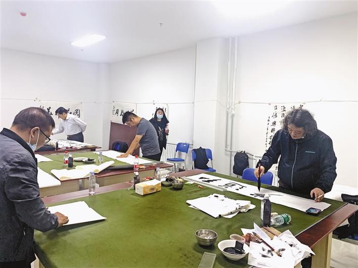 圖為北京和拉薩兩地書(shū)法家在拉薩師范高等專(zhuān)科學(xué)校開(kāi)展書(shū)法筆會(huì)交流。 記者 裴聰 攝