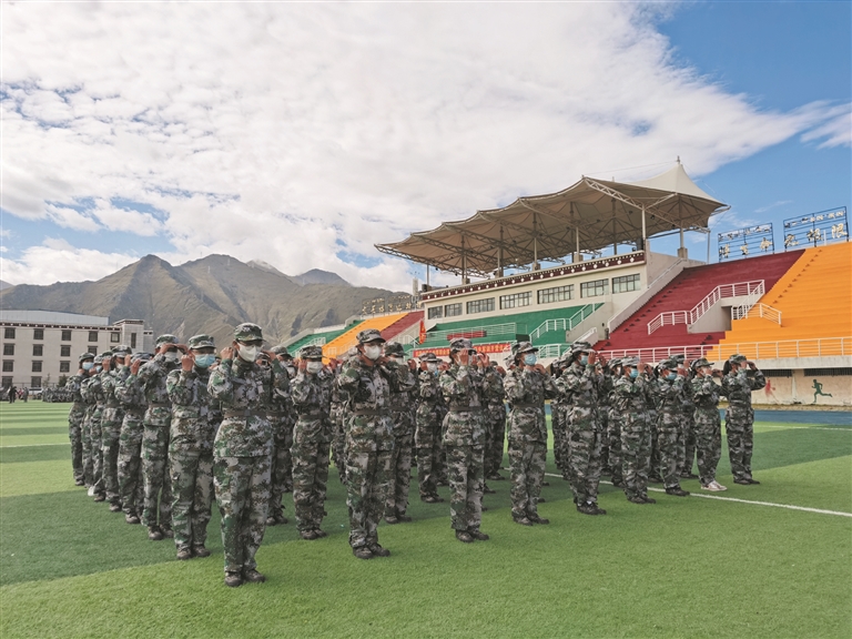 該校學(xué)生工作處主任次仁班旦說:“在校黨委的高度重視下,多次醞釀、精心部署,學(xué)校開展了2021級(jí)新生軍訓(xùn)。我們希望通過軍訓(xùn)增強(qiáng)學(xué)生的愛國(guó)主義意識(shí),增強(qiáng)國(guó)防教育意識(shí),把規(guī)矩、紀(jì)律納入軍訓(xùn)的課程當(dāng)中來,讓學(xué)生守規(guī)矩、學(xué)知識(shí)、學(xué)技能,鍛煉學(xué)生的意志品質(zhì)?!?/p>