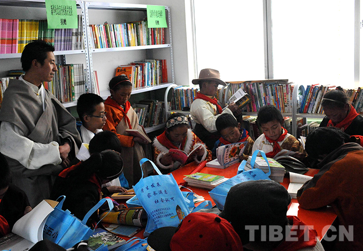 這是西藏那曲地區(qū)那曲縣(現(xiàn)那曲市色尼區(qū))羅瑪鎮(zhèn)中心小學(xué)學(xué)生在新建的“愛(ài)心書(shū)屋”讀書(shū)(唐召明2014年5月29日攝)