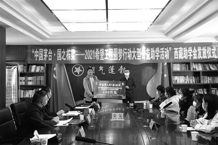 10月25日,共青團西藏自治區(qū)委員會、西藏青少年發(fā)展基金會和貴州茅臺酒廠(集團)有限責任公司在拉薩舉行“中國茅臺·國之棟梁”2021希望工程圓夢行動大型公益助學活動西藏助學金發(fā)放儀式。