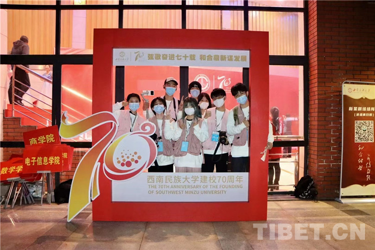 圖為西南民族大學(xué)學(xué)生慶祝母校建校70周年