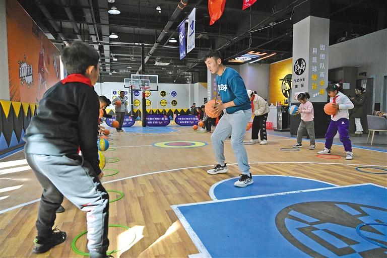 孩子們在教練的指導(dǎo)下進(jìn)行運球練習(xí)。記者 洛桑 攝