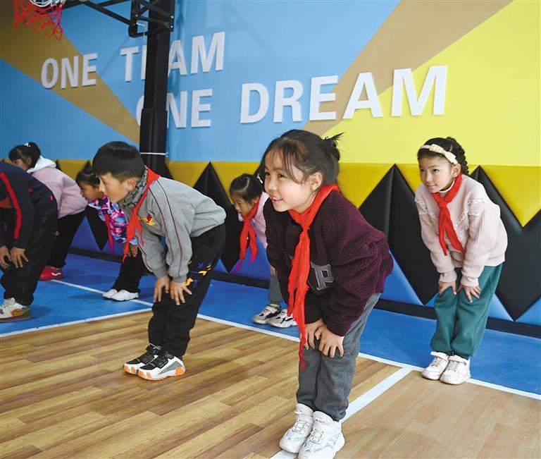 孩子們在教練的指導(dǎo)下開展熱身運動。記者 旦增蘭澤 攝