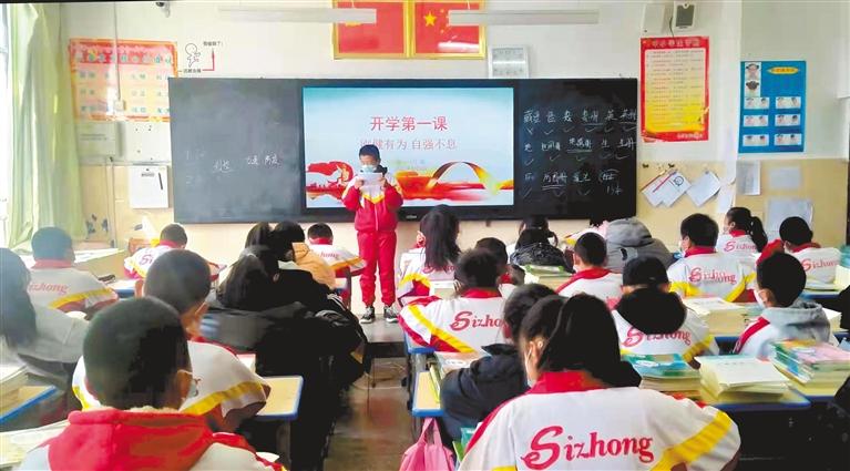 拉薩市城關(guān)區(qū)第四中學(xué)的師生在進(jìn)行開(kāi)學(xué)第一課
