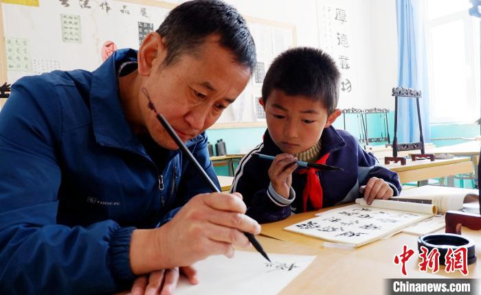 圖為青海省門(mén)源縣仙米鄉(xiāng)寄宿制小學(xué)少年宮學(xué)生在老師指導(dǎo)下寫(xiě)毛筆字。(資料圖) 李雋 攝