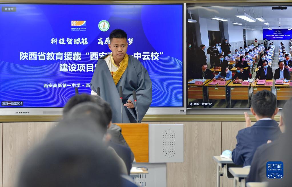 當(dāng)日,陜西省教育援藏“云?!苯ㄔO(shè)項(xiàng)目正式啟動(dòng)。陜西省西安高新第一中學(xué)和西藏拉薩阿里地區(qū)高級(jí)中學(xué)結(jié)成“對(duì)子”,借助5G網(wǎng)絡(luò)開(kāi)展教學(xué)教研互動(dòng),助力提升教育水平。