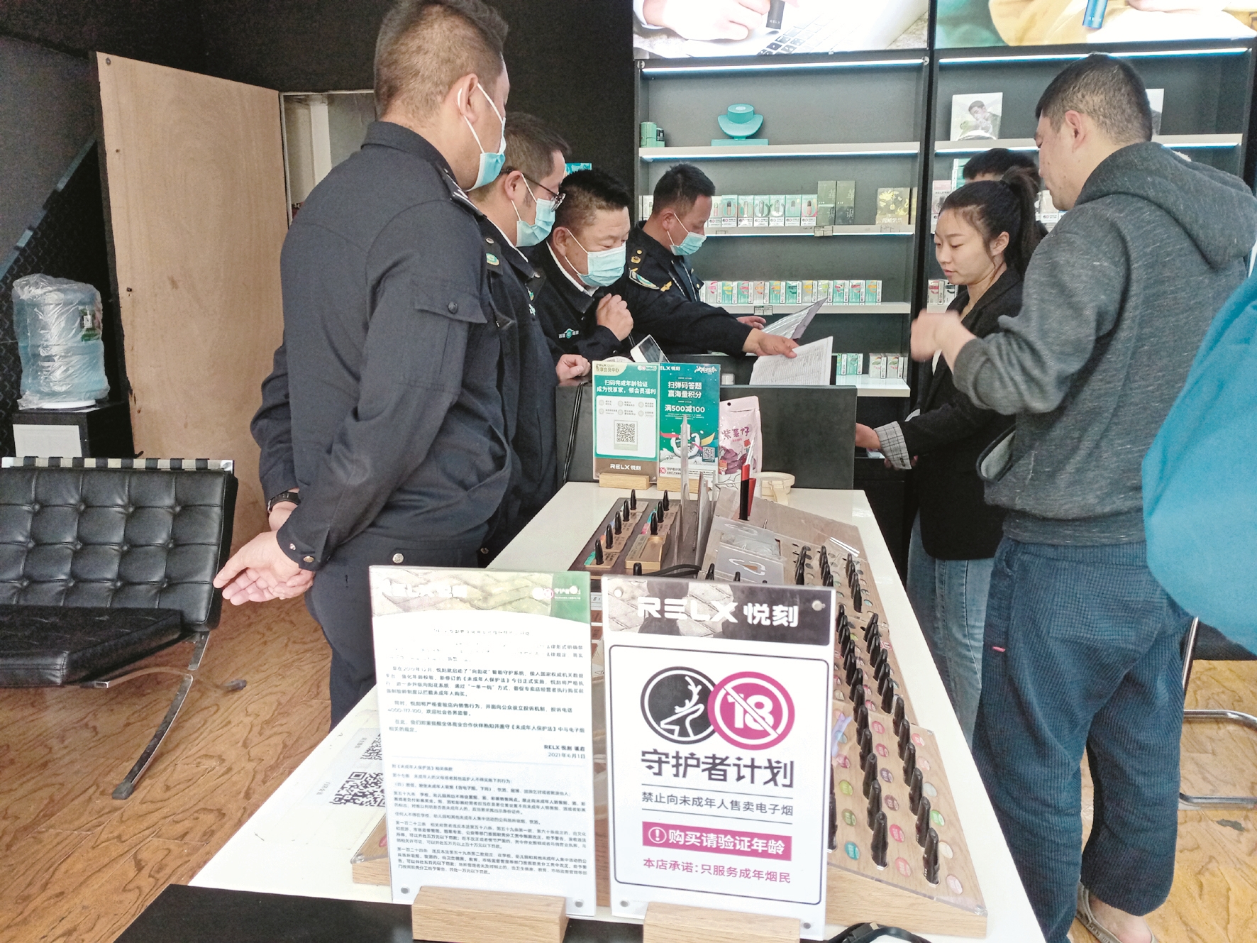 4月25日上午,市公安局和市煙草專賣局等四部門工作人員在柳梧新區(qū)聯(lián)合開展了電子煙銷售網(wǎng)點檢查。每到一個電子煙銷售網(wǎng)點,執(zhí)法人員會詳細查看銷售網(wǎng)點是否具有相關經(jīng)營資質、是否設立不得向未成年人售賣電子煙警示標志以及身份證件核驗等規(guī)定落實情況,并向電子煙經(jīng)營者進行相關法律法規(guī)宣傳,告知經(jīng)營者嚴禁向未成年人銷售電子煙。