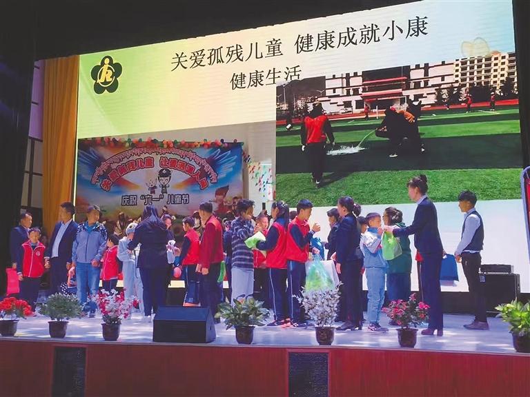 圖為在全國助殘日,全校師生開展“關愛孤殘兒童,健康成就小康”活動。