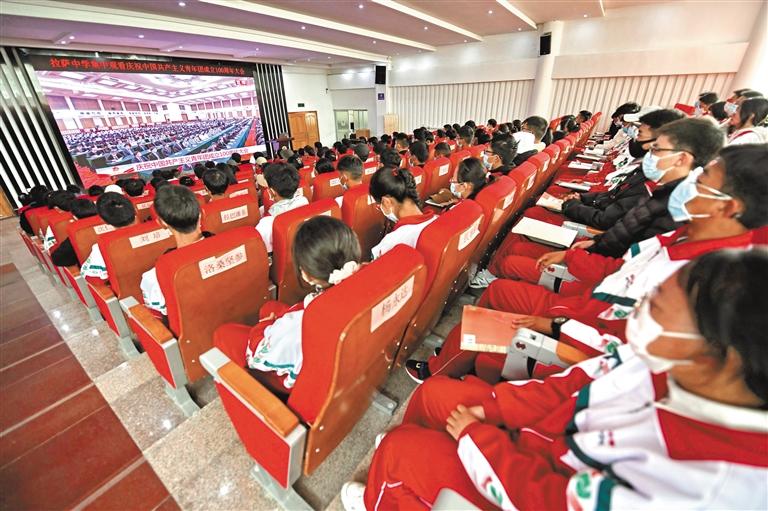 圖為拉薩中學(xué)的師生觀看慶祝中國(guó)共產(chǎn)主義青年團(tuán)成立100周年大會(huì)直播。 記者 唐斌 攝