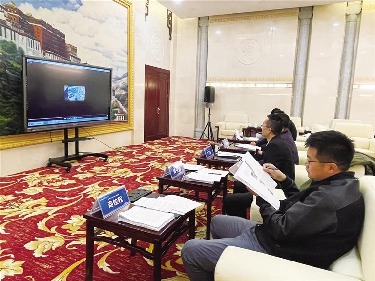 西藏賽區(qū)創(chuàng)意作品單元“智慧社區(qū)”(大學(xué)組)命題評(píng)審分會(huì)場(chǎng)。記者 王靜 攝