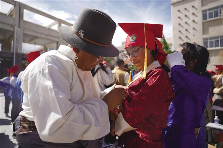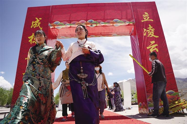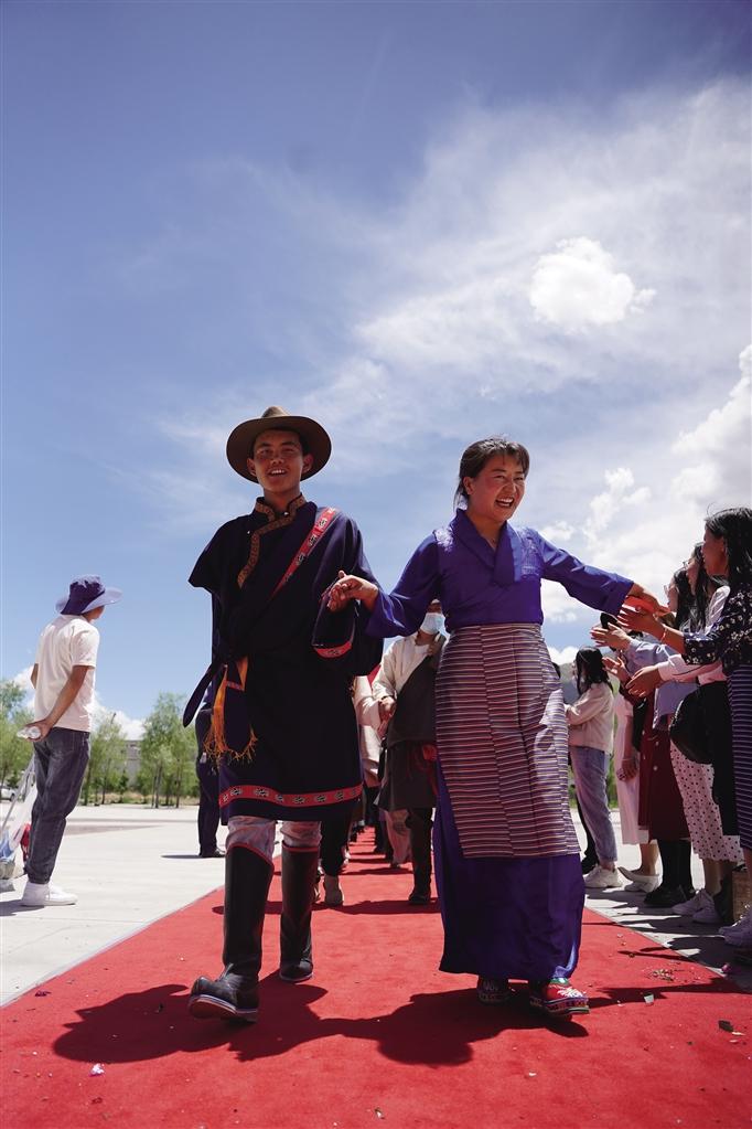 走進(jìn)拉薩市第四高級中學(xué),校園里每個(gè)角落都流露出喜悅與溫馨,同學(xué)們身著色彩鮮艷的民族傳統(tǒng)服裝,帶著自信的笑容,在父母與老師的陪伴下,走過“成人門”,踏上“成才路”,通向“成功門”。此時(shí)的他們意氣風(fēng)發(fā),青春的面龐如同朝陽一般閃爍著光芒,滿懷豪情地憧憬精彩的人生。高三學(xué)生朗色占堆告訴記者:“今天是特別值得紀(jì)念的日子,以后我們都是成年人了,會勇于承擔(dān)責(zé)任,對自己的行為負(fù)責(zé),努力成為一個(gè)有知識、知感恩、有責(zé)任、有擔(dān)當(dāng)?shù)男聲r(shí)代新青年?!?/p>