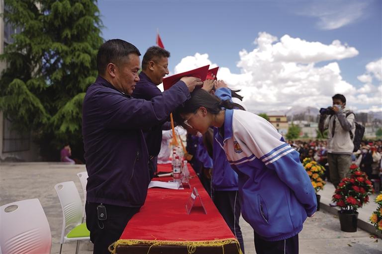 冠笄之禮,是中華民族重要的文化遺產(chǎn),更是長大成人的象征。活動中,同學(xué)們戴上成人禮帽,以成人的姿態(tài)、豪邁的語調(diào)向著鮮艷的五星紅旗莊嚴(yán)宣誓,向祖國、向社會、向未來作出了莊重的承諾。拉薩市第四高級中學(xué)副校長陸彭飛對這群充滿蓬勃朝氣和無限希望的學(xué)子們表達(dá)了衷心的祝愿,他希望同學(xué)們懷揣感恩之心,敢于拼搏、勇于超越,用奮斗給自己最美的青春交上一份滿意的答卷。