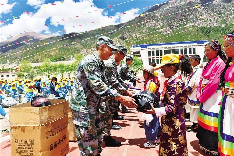 近日,李家偉與戰(zhàn)友一起,利用端午節(jié)假期,前往拉薩市林周縣阿朗鄉(xiāng)雙語小學,將他們用正能量獎金購買的愛心物資送到了孩子們的手中。