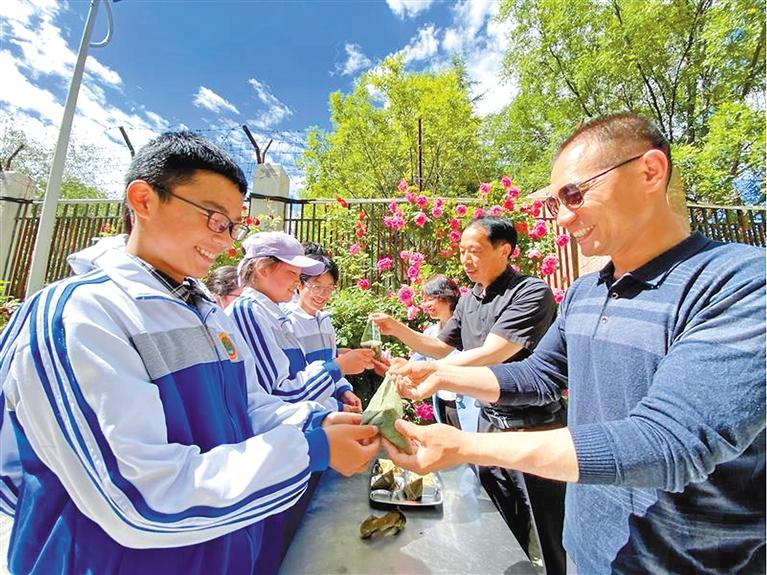 為弘揚中華優(yōu)秀傳統(tǒng)文化,促進漢藏文化交流,端午節(jié)期間,拉薩市第一中學教育援藏團隊的老師為學生送上來自江蘇老家親人包的粽子。