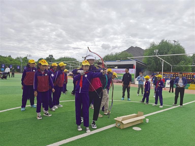近日,由西藏自治區(qū)體育局主辦,自治區(qū)社體中心承辦,自治區(qū)馬術(shù)協(xié)會(huì)和曲水縣達(dá)嘎鎮(zhèn)小學(xué)協(xié)辦的2022年送民族傳統(tǒng)體育下基層活動(dòng)走進(jìn)拉薩市曲水縣達(dá)嘎鎮(zhèn)小學(xué)。校園操場上,學(xué)生們精神抖擻、全神貫注,立身對(duì)靶,手握弓把正中央,在老師的號(hào)令聲中,拉動(dòng)弓弦,利箭破風(fēng)而出,命中靶位……
