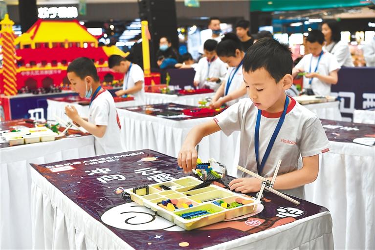 圖為孩子們在完成積木挑戰(zhàn)項目。記者 王敏 攝