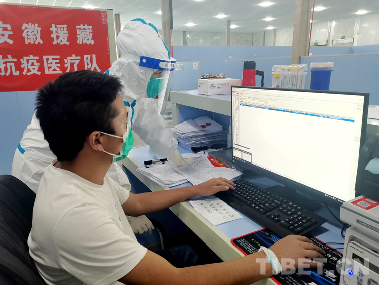 圖為才讓東主利用自身特長(zhǎng)協(xié)助醫(yī)護(hù)人員完成信息錄入等工作