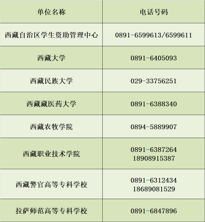 西藏自治區(qū)學(xué)生資助服務(wù)熱線號碼