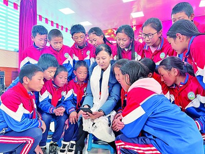 以藍天為幕布,以學(xué)校為舞臺,即使天氣寒冷也擋不住大家聆聽“精神食糧”的熱情?!斑^去,學(xué)校只有兩排小平房,土坯墻打的黑板,冬天取暖還用干牛糞呢!現(xiàn)在可不一樣了,現(xiàn)代化的教學(xué)設(shè)備、高水平的師資力量,高質(zhì)量的教學(xué)模式,讓牧民們的理念發(fā)生了根本性變化,越來越重視孩子的教育了?!倍泛笏骷乃拗菩W(xué)校長萬瑪項青感慨。