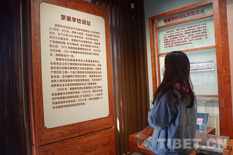 舊址西院,“蒙藏學(xué)校舊址專題展”主要展示舊址歷史沿革和革命活動,蒙藏學(xué)校學(xué)生參加五四運(yùn)動;李大釗、鄧中夏、趙世炎等對蒙藏學(xué)校青年的馬克思主義啟蒙和革命引導(dǎo);烏蘭夫、多松年 等 蒙藏學(xué)校進(jìn)步青年參加校內(nèi)外革命活動……突出展現(xiàn)中國共產(chǎn)黨成立后在這里組織開展革命斗爭的歷史?!爸腥A一脈 同心筑夢”主題展分為“共同締造新中國”“團(tuán)結(jié)建設(shè)新社會”“攜手奮斗繁榮路”“同心奮進(jìn)新時代”4個部分。展出照片420多幅,實物、文獻(xiàn)、檔案280余件,藝術(shù)展 項 18項,重點展示新時代民族工作取得的新的歷史性成就。